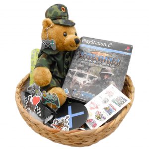 PRÄSENTKORB „PS2 Socom 3 Big Box“ Playstation 2 + Kopfhörer Geschenkidee /R1